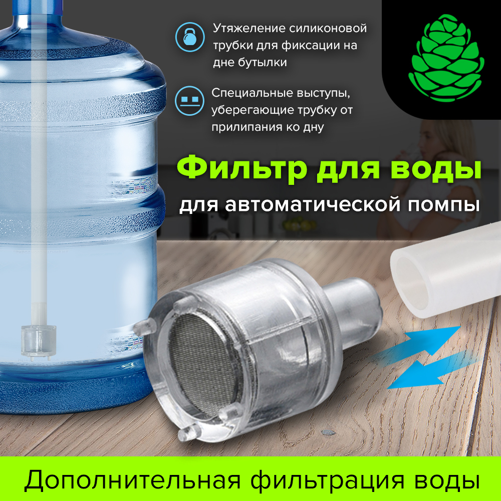 Список совместимых устройств:ПомпаОписание:Фильтр для воды - это полезный инновационный аксессуар для дополнительной очистки воды во время использования автоматической помпы.Особенности:Дополнительная фильтрация водыУдаление посторонних примесейГравитацио